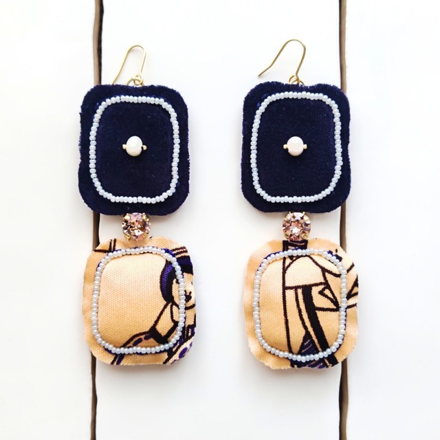 レトロ柄ピアス✦ネイビーとレディ