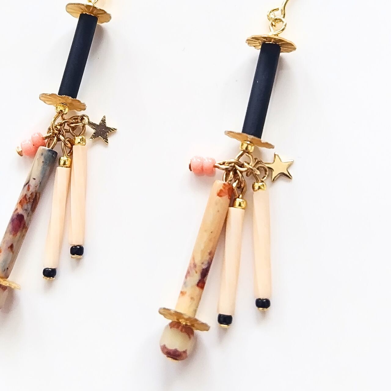 竹ビーズピアス✦マーブル